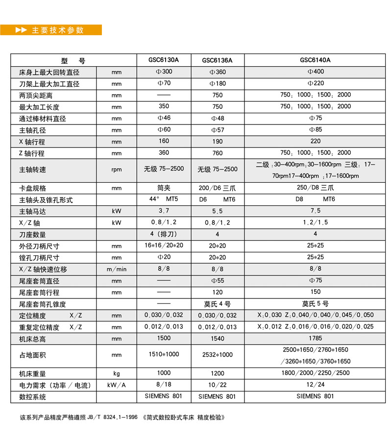 GSC61系列臥式平床身數控車床是一種中等規格、高效通用自動化機床。該系列機床配備了先進的SIEMENS系統,具有CNC標準功能,同時配裝四工位電動轉位刀架或者排刀裝置,以滿足切削時自動換刀需要,可完成多種工序的車削加工。該機床廣泛適用于軍工、汽車、航空、模具等制造行業的各種零件的精密加工。用戶根據需要可選配多種數控系統。該系列機型也適合做為教學用機使用。